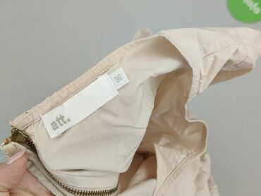 - Fason: krótka, z odcięciem i szeroką, marszczoną gumą w talii; lekko rozkloszowany dół
