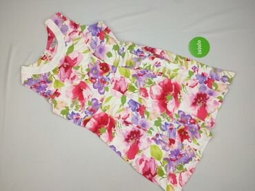 Sukienka damska w kwiaty - Krój: prosta, lekko dopasowana, długość do kolan (mini/krótka). - Dekolt: półokrągły. - Rękawy: krótkie, z delikatną falbanką/przeszyciem przy ramieniu. - Wzór: gęsty, k...
