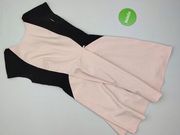 Sukienka damska F&F - Krój: rozkloszowana, bez rękawów, z dekoltem V - Kolor: pudrowy róż z szeroką, kontrastową czarną lamówką u dołu - Zapięcie: kryty zamek na plecach - Materiał (metka): 64% po...