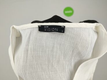 Elegancka propozycja na formalne okazje, do biura lub na wieczór; klasyczna czerń i biel podkreślają sylwetkę, a kopertowy dekolt nadaje kobiecy charakter. Etykieta: LCW Vision, rozmiar S.