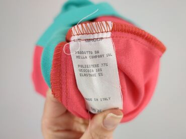 Widoczne metki producenta oraz składu tkaniny. Kolory na żywo: intensywny koral i turkus. Zamek w kolorze czarnym.