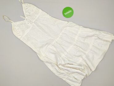 Sukienka damska na ramiączkach, biała, z koronką - Fason: letnia, lekko rozkloszowana, z elastyczną gumką w pasie - Ramiączka cienkie, regulowane - Dekolt i dół sukienki wykończone szeroką, ażurow...