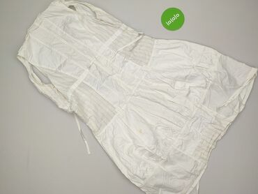 Sukienka damska dwukolorowa, rozmiar L - Fason: prosty, casualowy, z krótkim rękawem - Góra: biała, gładka, okrągły dekolt - Dół: beżowy, ołówkowy/lekko rozszerzany - Detal: falbanka na łączeniu g...