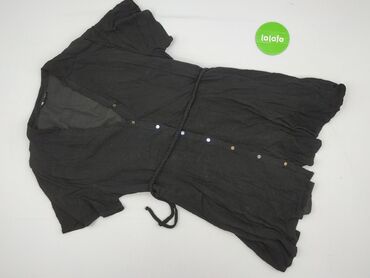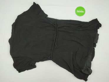 Bluzka damska z krótkim rękawem, dwukolorowa. - Krój: luźniejsza góra z marszczeniem, dół dopasowany do bioder (tunika/bluzka dłuższa). - Wzór i detale: górna część w jasny, koronkowy nadruk z moty...