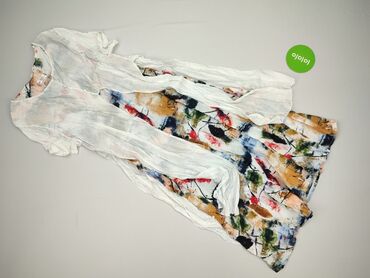 Sukienka damska SURE, rozmiar L. - Krój: rozkloszowana, długość midi z lekką falbaną u dołu; krótkie rękawy; dekolt w kształcie litery V. - Wzór: biało‑zielony, roślinny/abstrakcyjny print. - Mate...