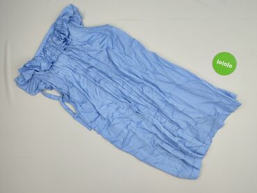 Sukienka damska, jasnoniebieska - Krój: midi, lekko rozszerzana ku dołowi - Dekolt: w kształcie litery V z przodu - Rękawy: krótkie, luźne - Talia: podkreślona – wszyta gumka/ściągacz tworzący del...