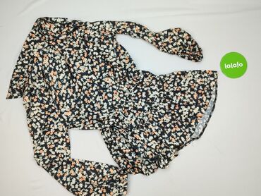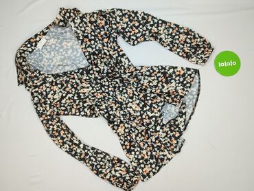Sukienka damska w kwiaty, rozmiar L. - Krój: midi, z zaznaczoną talią i delikatnie rozkloszowanym dołem z falbaną - Dekolt w kształcie litery V, przy szyi subtelna falbanka - Rękawy długie, zakońc...