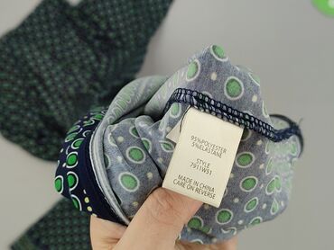 - Kolorystyka/wzór: granatowe tło w regularny, geometryczny nadruk zielonych i białych okręgów z drobnymi żółtymi kropkami