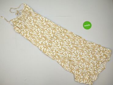 Używana damska sukienka marki Sinsay w rozmiarze XXL. Sukienka w kolorze żółtym, ozdobiona białymi kwiatami z szarymi środkami, co nadaje jej letni i świeży wygląd. Posiada cienkie ramiączka oraz m...