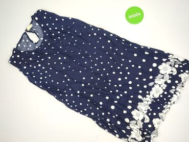 Sukienka damska, granatowa w białe grochy, rozmiar 42. - Fason: midi, bez rękawów, lekko dopasowana w talii, dół z falbaną/wykończeniem w stylu hiszpańskim - Dekolt: okrągły - Zapięcie: zamek na p...