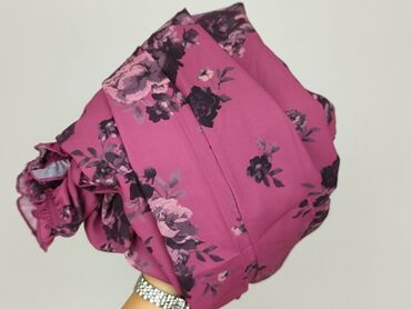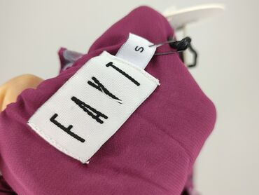 Sukienka FAYT – rozmiar S - Kolor: intensywny róż/fuksja z kwiatowym nadrukiem w odcieniach fioletu i czerni - Krój: długość midi, kopertowy/przekładany dół z rozcięciem z przodu; talia podkreślon...Stan: