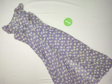 Sukienka maxi w kwiaty – rozmiar XS - Fason: kobiecy, marszczony na całej długości, z dekoltem w serek wiązanym sznurkiem; krótkie rękawy z delikatną falbaną. - Długość: maxi. - Wzór: gęsty, wielo...