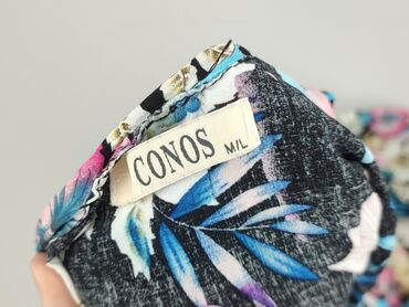 Sukienka CONOS, rozmiar M/L - Fason: midi, dopasowana w talii dzięki elastycznemu marszczeniu (gumka), lekko rozszerzana ku dołowi - Rękawy: krótkie, falbaniaste - Dekolt: okrągły - Wzór: drobna ł...