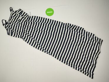 Sukienka damska maxi w paski - Fason: długa sukienka maxi, lekko rozkloszowany dół - Dekolt: okrągły - Ramiączka: cienkie, podwójne, krzyżujące się na plecach - Wzór: poziome granatowo-białe paski...