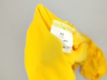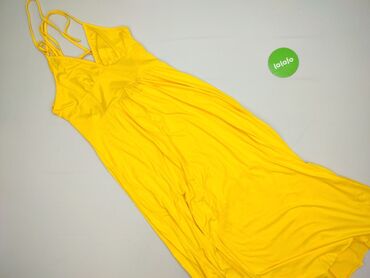 Sukienka maxi z krótkim rękawem, rozmiar XL. - Góra: gładka, bawełniana dzianina w intensywnym, słonecznym żółtym kolorze; dekolt w kształcie łagodnego U. - Dół: lekko rozkloszowany, długa spódnic...