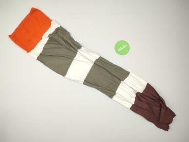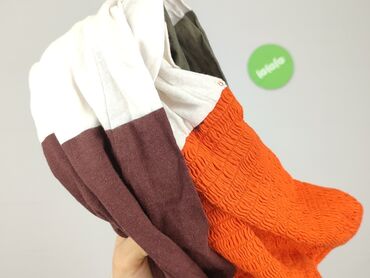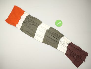 - Wzór/kolor: szerokie pasy kolorystyczne – pomarańczowy (góra), biały, oliwkowy, biały, oliwkowy, biały, śliwkowo-brązowy (dół)