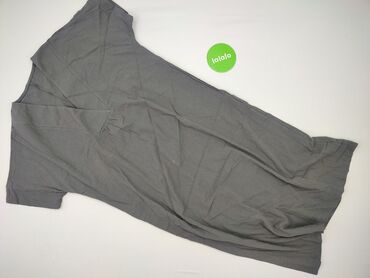Sukienka maxi z krótkim rękawem, kolor jasnoszary/kość słoniowa. - Rozmiar z metki: 4XL - Fason: luźny, z odcięciem w talii i marszczeniem; dodatkowe długie paski do przewiązania (możliwość reg...