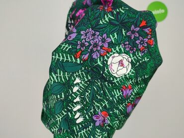 - Wzór: gęsty botaniczny nadruk – liście paproci i kwiaty w odcieniach fioletu, bieli i czerwieni na szmaragdowo‑zielonym tle