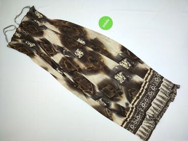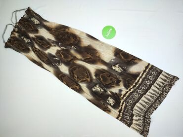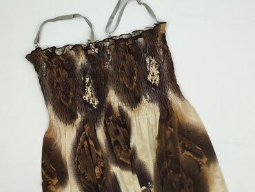 Sukienka maxi Apricot – damska, bez ramiączek (strapless), rozmiar M. - Fason: długa, lekko rozkloszowana, z marszczoną/gumowaną górą utrzymującą sukienkę na biuście. - Wzór i kolor: brązowa baza ...