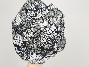 Sukienka maxi bez rękawów, rozmiar XL. - Fason: długa, lekko rozszerzana ku dołowi, z dekoltem w kształcie litery V z przodu i z tyłu. - Wzór: po bokach czarno‑białe, ornamentalne motywy; przez śr...Stan: