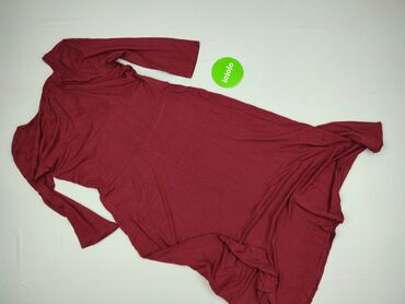 Sukienka damska z połyskiem – kolor ciemnoczerwony/burgund ze srebrzystą nitką - Krój: dopasowana góra, rozkloszowany dół; długość mini - Rękaw: długi - Dekolt: głęboki V na plecach, okrągły z prz...