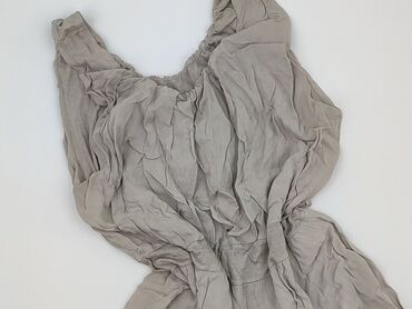 Sukienka maxi z dzianiny, kolor jasnoszary melanż. - Fason: długa, zwiewna maxi, odcinana w talii gumką, lekko marszczona u góry. - Dekolt: łódkowy z delikatnymi zakładkami. - Ramiączka: szerokie,...