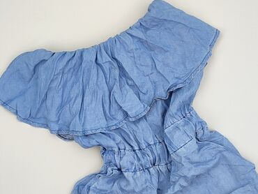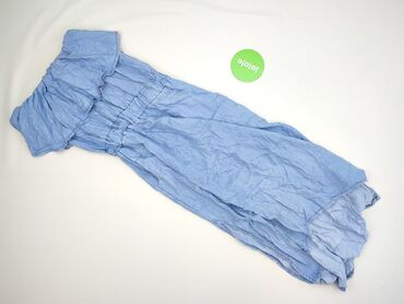 Sukienka damska typu hiszpanka, kolor jasnoniebieski (denimowy melanż). - Fason: luźny, z elastyczną, marszczoną gumką przy dekolcie – możliwość noszenia z odkrytymi ramionami. - Rękawy: krótkie, ...Stan: