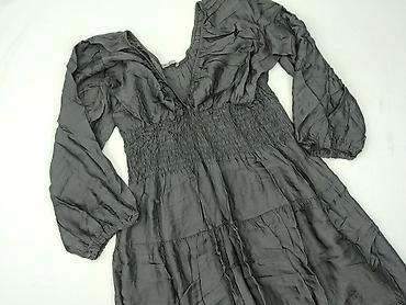 Sukienka damska, jasnoszara, wykonana w 100% z wiskozy (metka: VISCOSA 100%, prodotto in Italy). - Fason: luźny, długość do kolan/za kolano (zależnie od wzrostu), z zaznaczoną talią na gumce. - ...