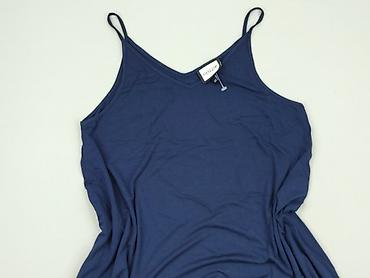 Sukienka damska maxi w paski - Fason: długa sukienka maxi, lekko rozkloszowany dół - Dekolt: okrągły - Ramiączka: cienkie, podwójne, krzyżujące się na plecach - Wzór: poziome granatowo-białe paski...