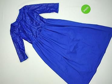 Sukienka damska wieczorowa, rozmiar M. - Kolor: granatowy. - Fason: dopasowany, długość midi. - Materiał wierzchni z przodu pokryty gęstymi cekinami, które pięknie odbijają światło. - Rękaw...