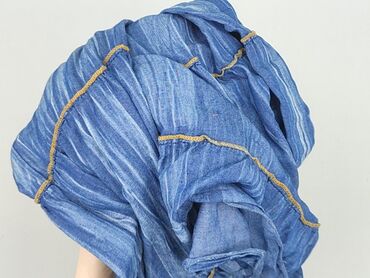 - Materiał: lekka, cienka tkanina o efekcie „crinkle” (pomarszczona struktura); wzór delikatnych, pionowych przetarć/„pasiaków” w odcieniach jeansowego błękitu