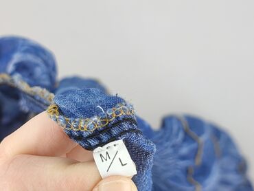 - Kolor: niebieski (jeansowy) z jaśniejszymi smugami i kontrastowymi przeszyciami