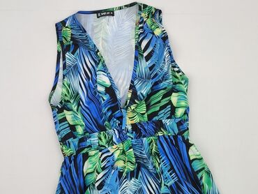Sukienka maxi SHEIN w tropikalny wzór - Model: długa sukienka letnia z wiązaniem na szyi (halter), głęboki dekolt V - Wzór/kolor: liście palmowe w odcieniach rudo-pomarańczowym i brązowym na kremo...