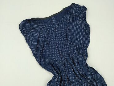 Sukienka damska w grochy, rozmiar L. - Kolor: granatowy z białymi, nieregularnymi kropkami - Krój: kopertowy look z dekoltem V, taliowana, dół z zakładką (efekt wrap) - Rękaw: do łokcia - Długość:...