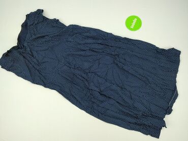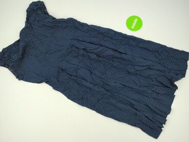 Sukienka damska, granatowa w białe grochy, rozmiar 42. - Fason: midi, bez rękawów, lekko dopasowana w talii, dół z falbaną/wykończeniem w stylu hiszpańskim - Dekolt: okrągły - Zapięcie: zamek na p...