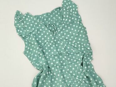 Zielona sukienka w białe groszki – New Style - Fason: kopertowy/zakładany z falbaną u dołu, długość mini - Dekolt: szeroki, elastyczny – można nosić na ramionach lub opuszczony - Rękawy: krótkie b...