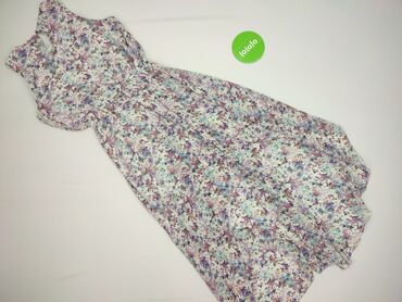 Sukienka damska w kwiaty, rozmiar EU 40 (SLO 42). - Kolor bazowy: pudrowy róż - Wzór: malarskie, wielobarwne kwiaty (odcienie różu, fioletu, zieleni, bieli, złamanej żółci) - Krój: odcięcie w talii...