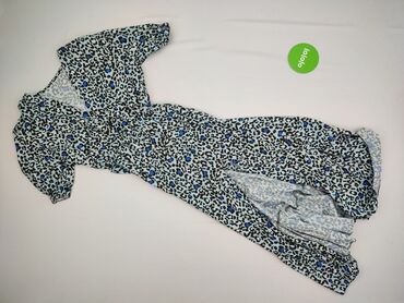 Sukienka maxi w kwiaty – rozmiar XL - Wzór: intensywne niebieskie kwiaty i zielone liście na białym tle - Fason: długa, zwiewna maxi; rękawy długie z elastyczną gumką przy mankietach i dekolcie (m...