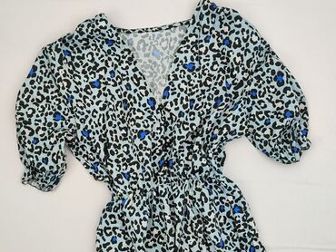 - Fason: kopertowy dekolt V, zaznaczona talia z gumką, rozkloszowany dół z rozporkiem z przodu.