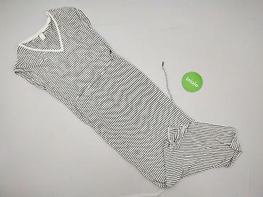 Sukienka damska H&M, rozmiar XL - Fason: prosta, dzianinowa, z krótkim rękawem - Długość: midi (za kolano) - Dekolt: okrągły - Wzór: szerokie poziome pasy w kolorze czarnym na beżowym tle - Materi...
