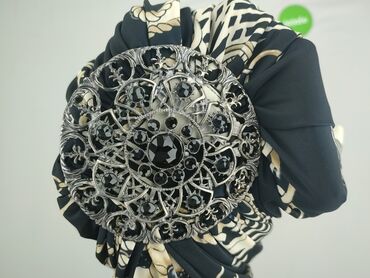 - Detal: duża, biżuteryjna aplikacja w centrum (metaliczny okrąg z czarnymi kamieniami)