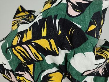 - Wzór: duży, tropikalny print w liście/rośliny w kolorach zieleni, czerni, żółci, bieli i pudrowego różu