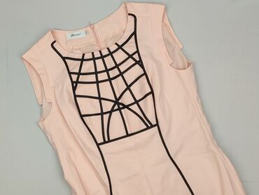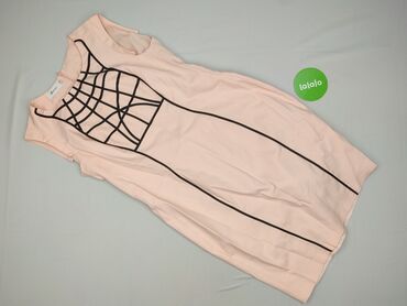 Sukienka M&M w kolorze jasnego pudrowego różu. - Rozmiar: 42 (metka) - Skład: 97% poliester, 3% elastan - Fason: ołówkowy, długość za kolano - Dekolt: okrągły - Rękawy: krótkie, z wstawkami z półt...
