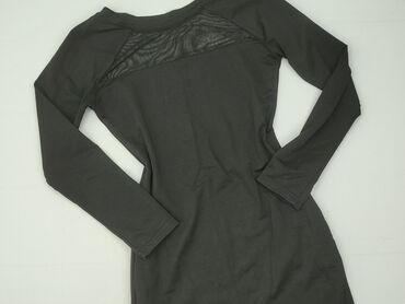 Sukienka damska z długim rękawem, kolor czarny/grafitowy. - Krój: dopasowany, długość przed kolano. - Dekolt: okrągły z trójkątną wstawką z półprzezroczystej siateczki z przodu. - Materiał: 95% pol...