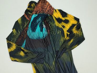 - Wzór i kolory: intensywny print inspirowany zwierzęcym motywem i piórami; dominują czernie z żółcią, turkusem i pomarańczem.