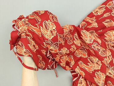 Sukienka SHEIN - Rozmiar: EU XL (44), US 12 – na metce - Fason: midi/za kolano, luźny krój z lekkim rozkloszowaniem - Dekolt: w kształcie litery V - Rękawy: krótkie, falbaniaste - Wzór: drobna, ni...Sukienka midi damska w kolorze czerwonym z wielobarwnym wzorem kwiatowym i geometrycznym. Charakteryzuje się dekoltem w kształcie litery V, bez rękawów oraz elastycznym pasem, który podkreśla talię. Długość midi sprawia, że jest uniwersalna i nadaje się na wiele okazji. Materiał jest lekki i przewiewny, idealny na cieplejsze dni.