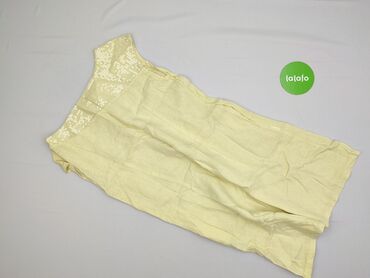 Sukienka damska w kwiaty - Krój: ołówkowy, długość za kolano, krótkie rękawy, okrągły dekolt - Kolor: pastelowy żółty z nadrukiem kwiatowym w odcieniach oliwkowej zieleni - Tkanina: lekka, miękko ...
