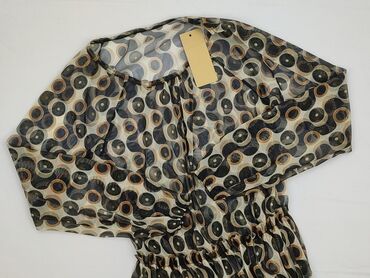 Sukienka damska o prostym, lekko rozszerzanym kroju (A‑line), z długim rękawem. Delikatny, jasnoróżowy kolor bazowy z wyrazistym, graficznym nadrukiem: - na całej długości – okrągłe, czarno-białe m...