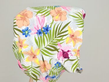 - Wzór: tropikalny print na białym tle – liście palm, kwiaty hibiskusa i storczyki w kolorach zieleni, różu, żółci, pomarańczu i niebieskiego