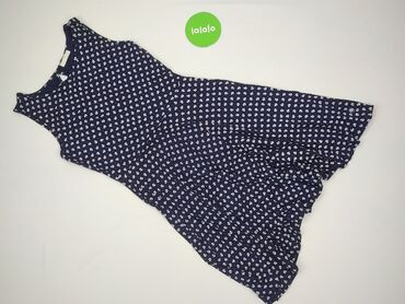 Sukienka H&M - Rozmiar: EUR 38 (US/CA 8), CN 170/88A - Materiał: 100% wiskoza (lekka, przewiewna tkanina) - Kolor: granatowy - Wzór: drobne kwiaty/rozetki w odcieniach bieli, czerwieni i zieleni -...